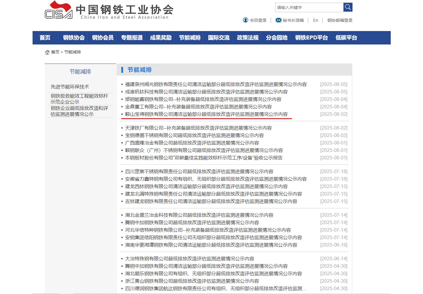 2025年8月2日,中國(guó)鋼鐵工業(yè)協(xié)會(huì)對(duì)鞍山寶得鋼鐵有限公司超低排放清潔運(yùn)輸改造和評(píng)估監(jiān)測(cè)情況進(jìn)行了公示,寶得鋼鐵有限公司成為鞍山市除鞍鋼外首個(gè)完成超低排放清潔運(yùn)輸改造和評(píng)估監(jiān)測(cè)工作的企業(yè),標(biāo)志著公司超低排放改造項(xiàng)目取得重要階段性成果。不僅為企業(yè)可持續(xù)發(fā)展奠定了堅(jiān)實(shí)基礎(chǔ),也為鞍山地區(qū)的環(huán)境保護(hù)作出了積極貢獻(xiàn),是企業(yè)履行社會(huì)責(zé)任的生動(dòng)實(shí)踐。